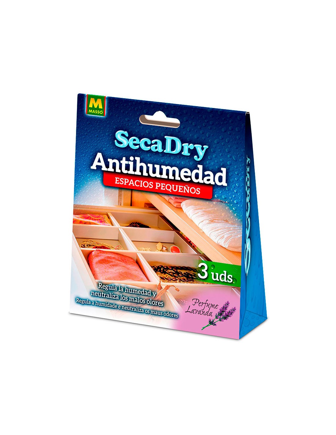 Secadry bolsa en gel 3x30g. ideales para espaciosreducidos como cajones, estantes, armarios, cajas, coches, bolsas de deporte, etc. los cristales del interior de la bolsa aborserben y reducen la humedad depositandola en forma de gel dentro de las propias bolsas. suave y agradable aroma a lavanda 231587 masso