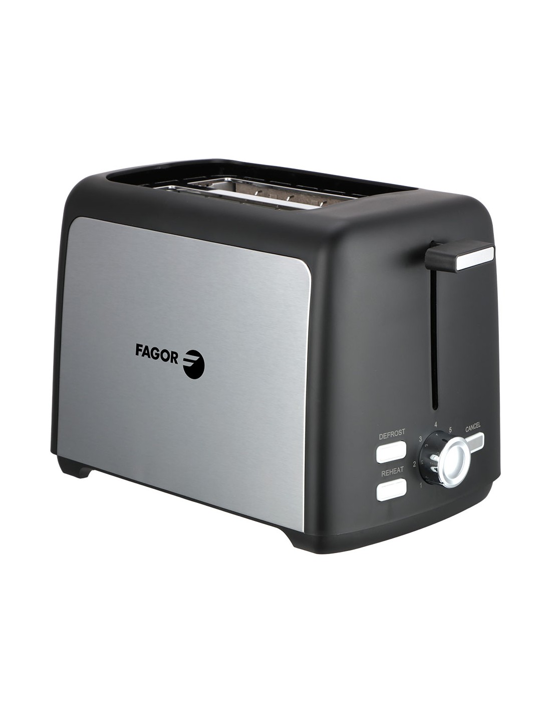 Tostador de 2 rebanadas con potencia de 800 w y voltaje de 220-240 v / 50-60 hz. cuerpo de plástico con detalles en acero inoxidable. incorpora funciones de tostar, descongelar y cancelar, además de un control de tostado ajustable con 7 niveles. cuenta con bandeja recogemigas, función de auto-centrado para un tostado uniforme, almacenamiento de cable y carcasa de tacto frío