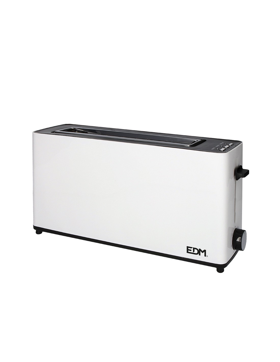 Tostadora ranura larga "white design" potencia: 900w. color blanco. superficie de toque frio. funcion de parada. 7 posiciones de tostado. bandeja recogemigas. dimensiones: 37x11,5x19cm (ancho/fondo/alto) 220-240v 50/60hz edm